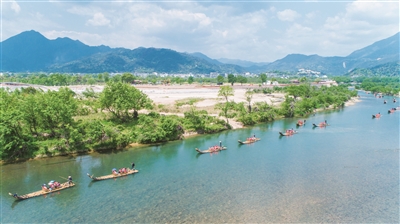 | 楠溪江竹筏漂流文旅项目吸引游客排队体验。 |