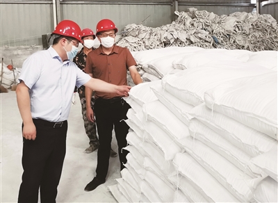 衢江农商银行上方支行客户经理在衢州顺天钙业有限公司做贷款调查。 郑晟 朱柳健 摄 |