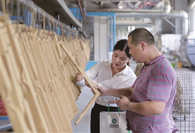 | 嘉兴银行客户经理实地走访浙江众邦家居有限公司生产车间。余姣 摄 |
