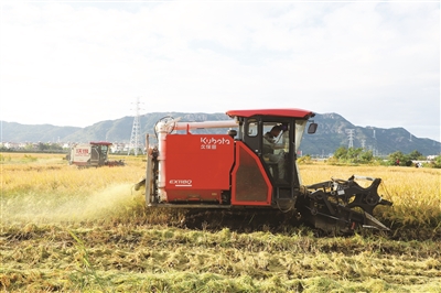 11月5日下午3时,位于温岭市松门镇西瓜塘的基本农田里,机声隆隆,两台联合收割机正在欢快奔跑。收割机过处,稻茬整齐,颗粒归仓。这是该镇第一家启动连作晚稻收割的农户,也标志着该镇6000亩成熟连作晚稻全面进入开镰收割期。