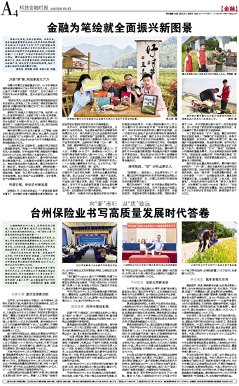 站在“十四五”收官与小微金融改革十周年的历史交汇点,台州保险业以中央金融工作会议精神为指引,紧扣金融赋能“三大牵引性抓手”,做好科技金融、普惠金融、绿色金融、养老金融、数字金融“五篇大文章”,奋力描绘属于这个时代的金融新篇。本报通讯员 童耿 龙楠