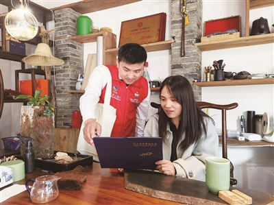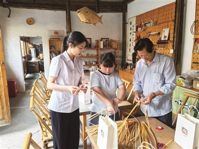 | 中国工商银行龙游支行客户经理走访了解非遗文创产品的设计销售情况。陈凤凤 摄 |