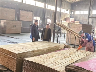 | 台州银行衢州分行客户经理走访查看江山市金兔木业生产车间。周雅媛 摄 |
