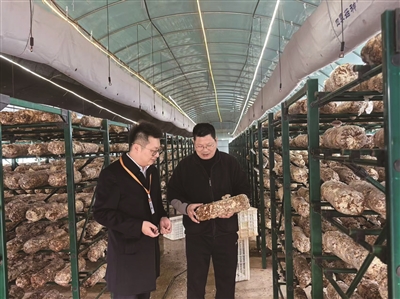 | 温州银行衢州分行客户经理实地走访浙江香满亭生物科技公司花菇菌棒现代化培育基地。张余浩 摄 |