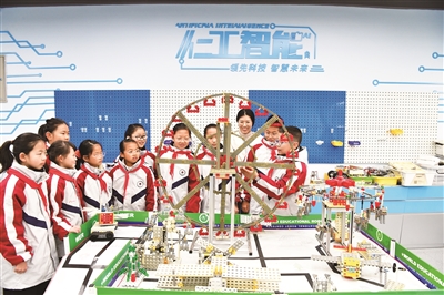 近日,建德市寿昌第一小学科技社团的老师在人工智能Al工坊教室里,向学生讲解旋转木马、摩天轮等一批积木机器人的实践运用科学知识。