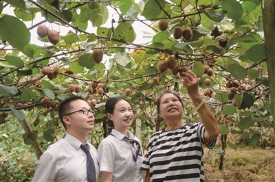 | 江山农商银行客户经理走访猕猴桃种植户。 |