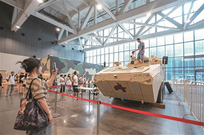 现场超过300件展品系统化铺开,将现代国防的“陆、海、空、天”一体化体系直观呈现。除了静态的展品展示,航天员还带来了主题课程,用生动的讲述搭建起“天地对话”的桥梁。